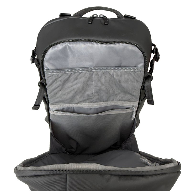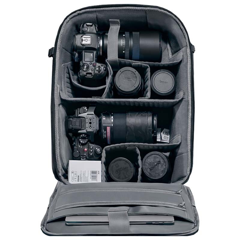 L'extérieur du sac est doté de plusieurs poches à accès rapide pour ranger câbles, cartes mémoire et autres petits objets. Accès facile et rapide pour une utilisation immédiate et sans interruption.