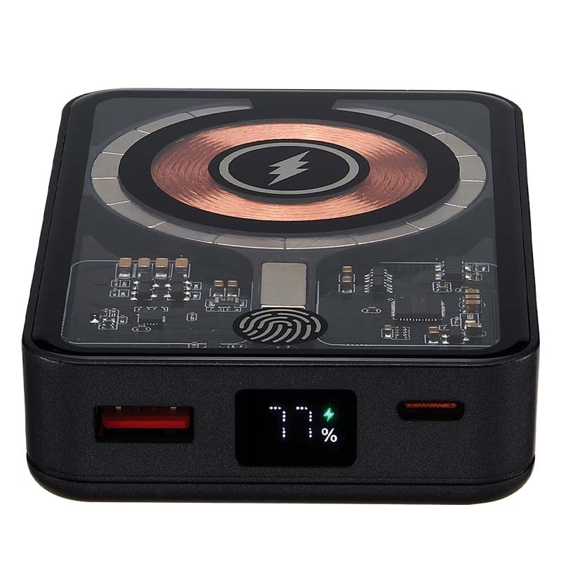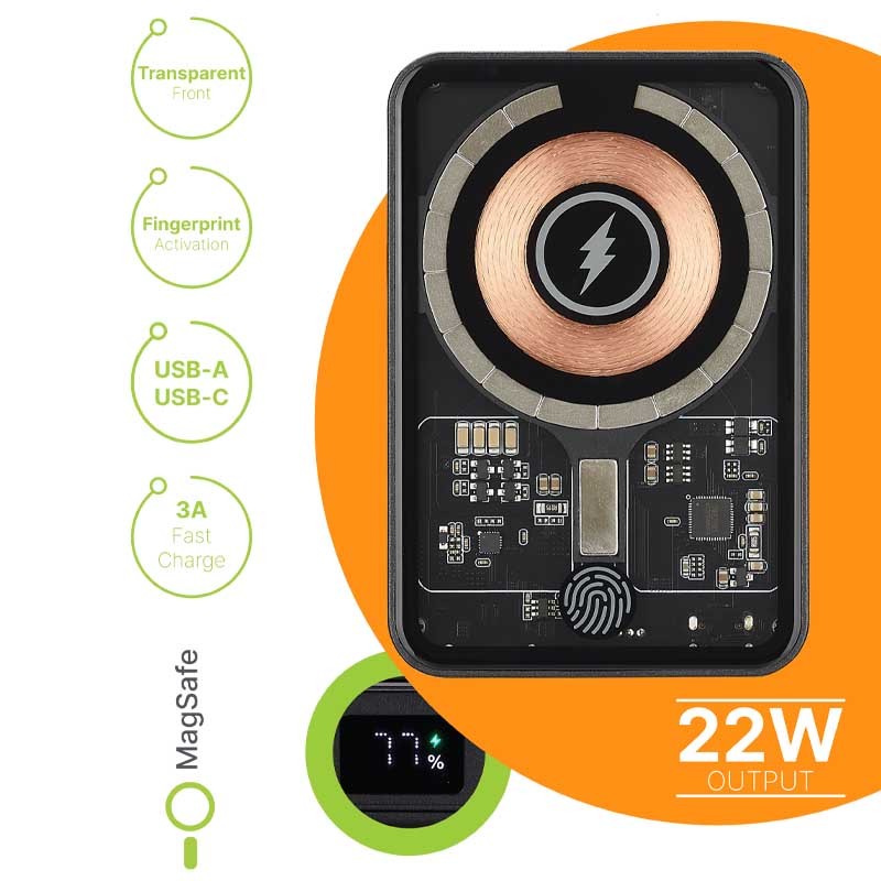 Met een compact en eenvoudig te gebruiken ontwerp presenteren we de iPhone MagSafe Powerbank met Qi-activering. Dankzij de magneet wordt de batterij eenvoudig en gemakkelijk aan dit accessoire bevestigd. Het is ook een gadget dat compatibel is met de MagSafe-technologie van Apple, van de iPhone 12 tot de nieuwste versie, zoals de iPhone 15. Als u een oudere iPhone hebt en een MagSafe-hoesje gebruikt, hoeft u de powerbank alleen maar aan te raken. Hij wordt dan automatisch opgeladen.